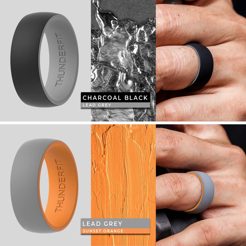 ThunderFit Silicone Wedding Rings for Men, 2 Layers Round Rubber Engagement B...
