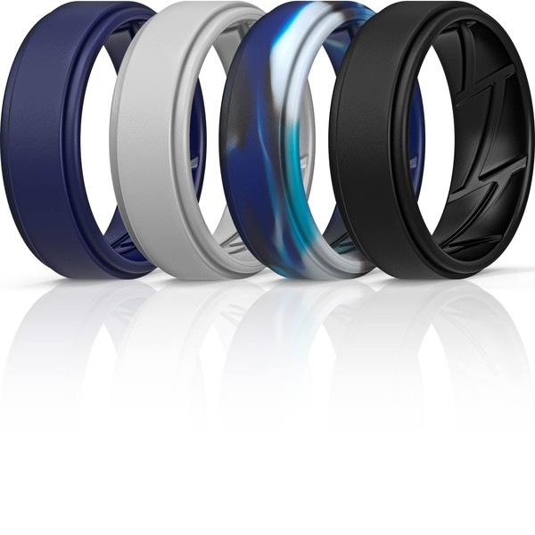 ThunderFit Silicone Wedding Rings for Men Breathable Airflow Inner Grooves, Step Edge Sleek Design Rubber Engagement Bands 8mm Wide 2mm Thick, Variety Multipack 1-7