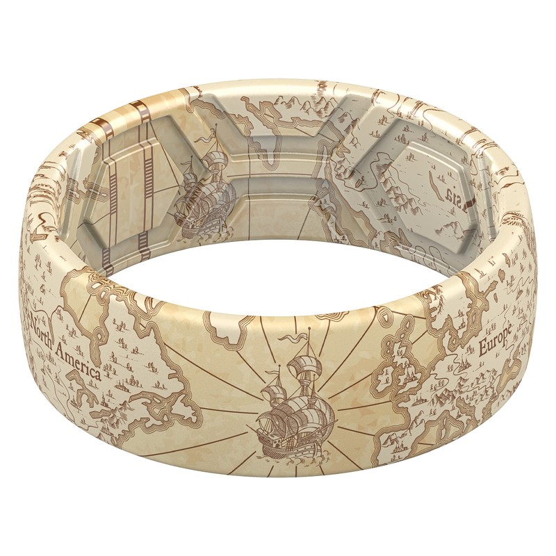 ThunderFit Silicone Wedding Rings for Men, Breathable Printed Design Rubber Engagement Bands 8mm Wide 2mm Thick (World Map - Size 14-14.5 (23.20mm))