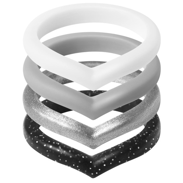 ThunderFit Thin Heart Shaped Silicone Wedding Rings for Women, Stackable Rubber Engagement Bands 2.7mm Wide 2mm Thick - 1/4/8 Variety Multipack (Pack E, Size 5.5-6 (16.5mm))