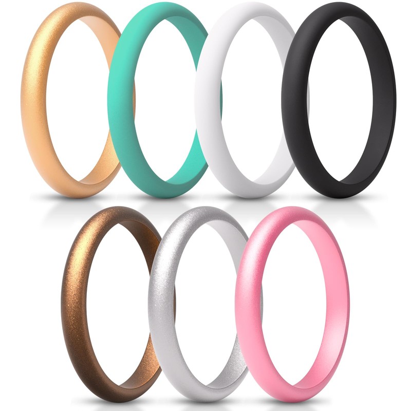 ThunderFit Women's Silicone Stackable Wedding Ring Sets, Thin Rubber Wedding Bands, 2.6mm Wide, 2.1mm Thick, Variety Multipack 1/4/6/7/8/9