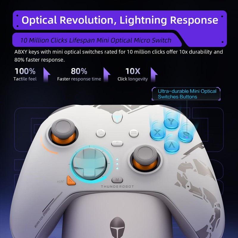 Thunderobot G80 1000HZ Wireless Gaming Controller for NS/PC/iOS/Android with Charging Dock,Hall-effect Adjustable Joystick,Dual-Mode Force-Switch Triggers,Optical Micro Switches,RGB Backlight