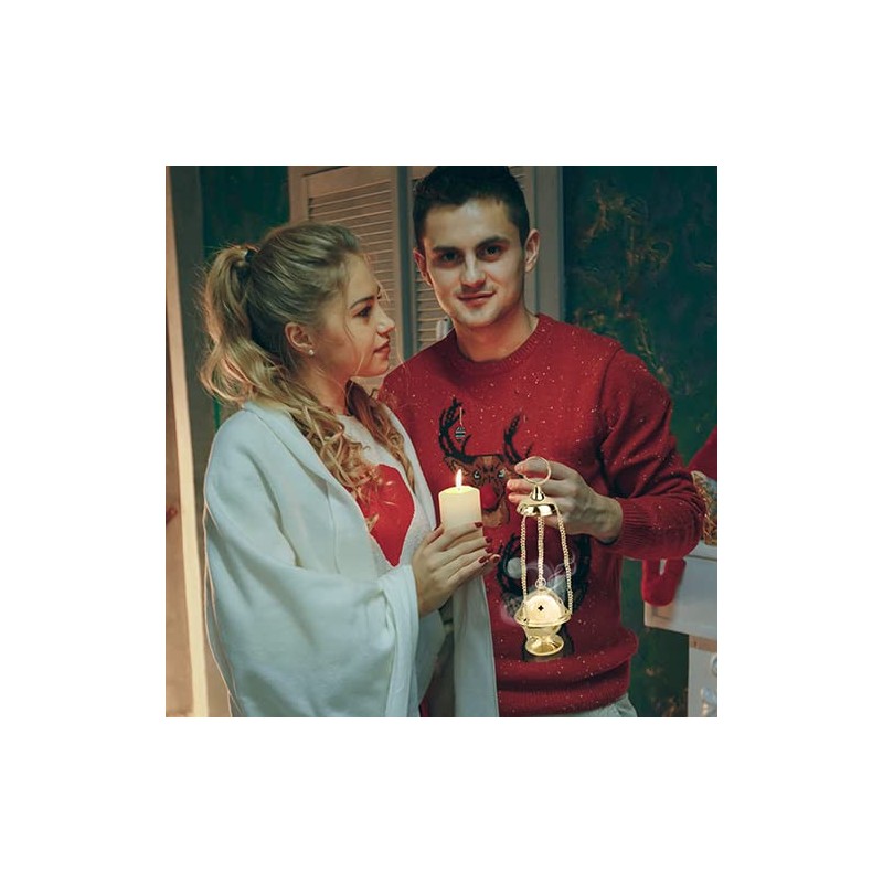 Censer censer polished brass with chain 25 cm long 6 x 10 cm
