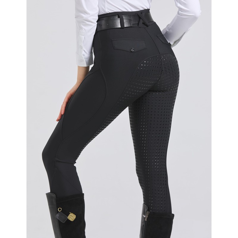 - Features: The full seat silicone grip pattern covers the legs, creating a confident saddle contact experience. The active riding leggings have large pockets on the side, providing an excellent tight fit for your body. You can place your phone and essentials in the appropriate position.