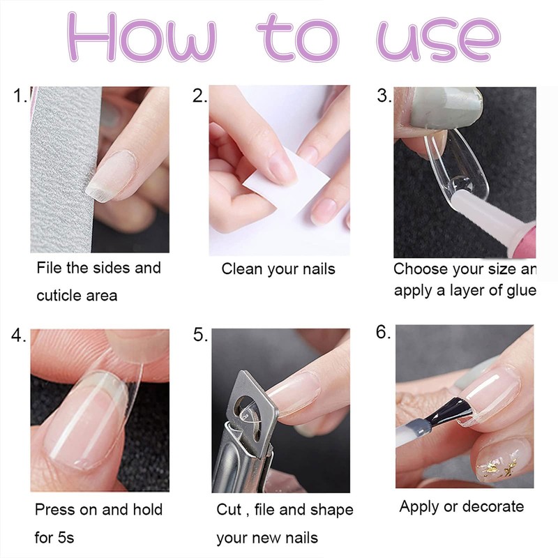 - Einfach aufzutragen: Bitte achten Sie beim Auftragen des Nagelklebers darauf, dass keine Luftblasen oder Wasser auf Ihren Naturnägeln sind, Tragen Sie anschließend eine dünne Schicht Kleber auf die künstlichen Nägel auf, Nochmals 5-10 Sekunden drücken und fertig