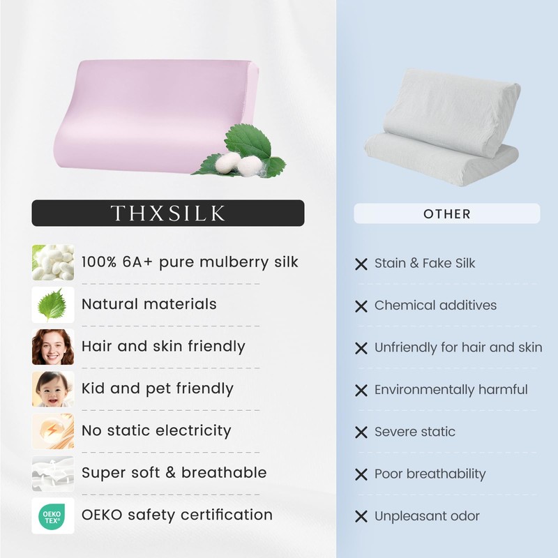 - 【COMFORTABLE SLEEPING EXPERIENCE】: The pure natural silk material improves the silk pillowcase for contour pollow's moisture absorption and quick-drying effect. Soft and breathable fabric allows you to feel cool in summer. The pillowcase is OEKO-TEX certified, ensuring that no harmful chemicals are used in the production process.