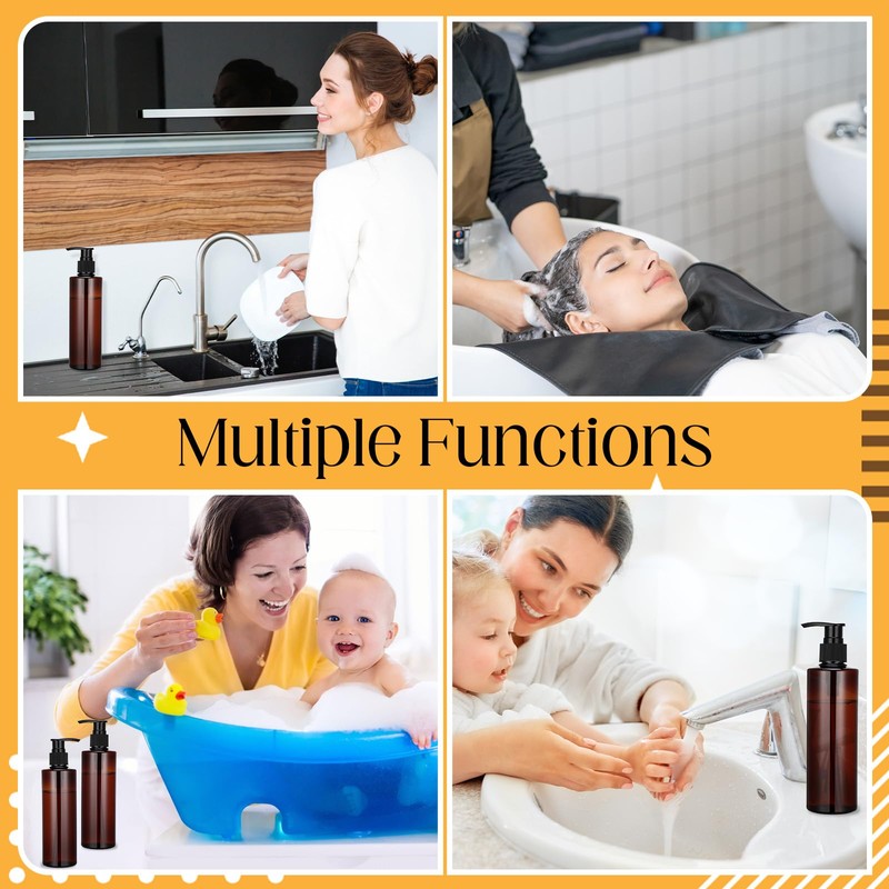 • Multiple Liquid to Hold: the plastic bottles with pump can hold multiple liquids you want, such as body lotion, shower gel, shampoo, conditioner, essential oil, detergent and so on, suitable for bathroom, kitchen, living room and other home places, and you can carry them when going outside