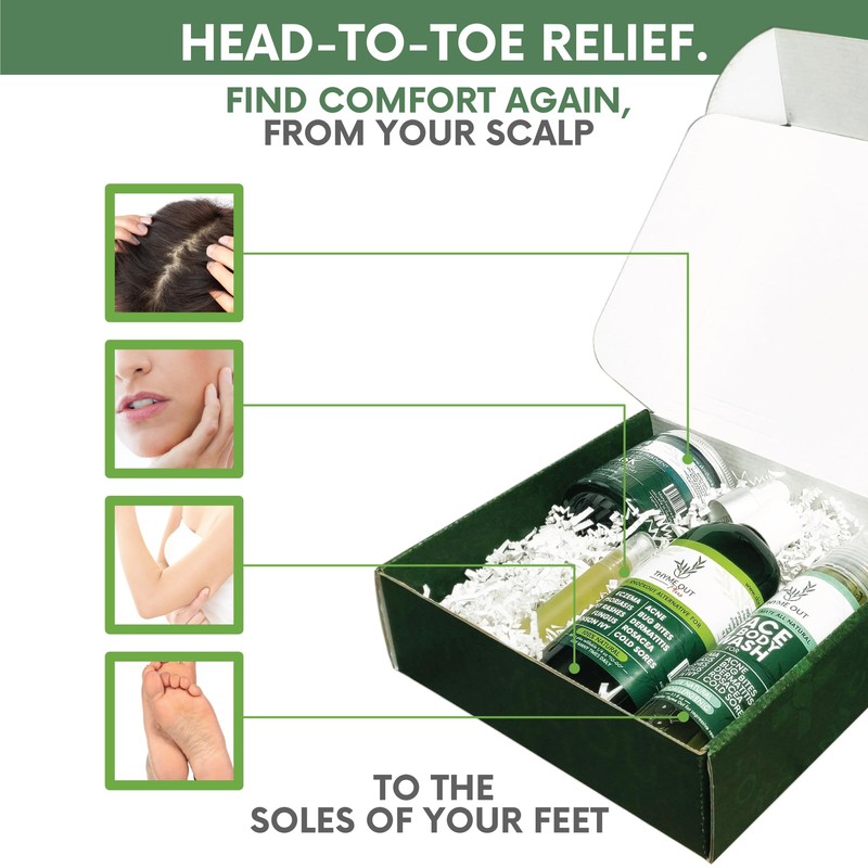 • Nature's Soothing Touch: Expertly formulated with organic thyme and colloidal oatmeal, this bundle offers a gentle embrace to calm eczema and itchy skin flare-ups with three different styles of application offering their own benefits!