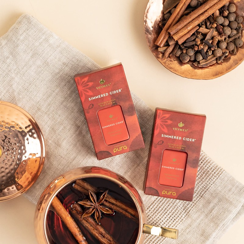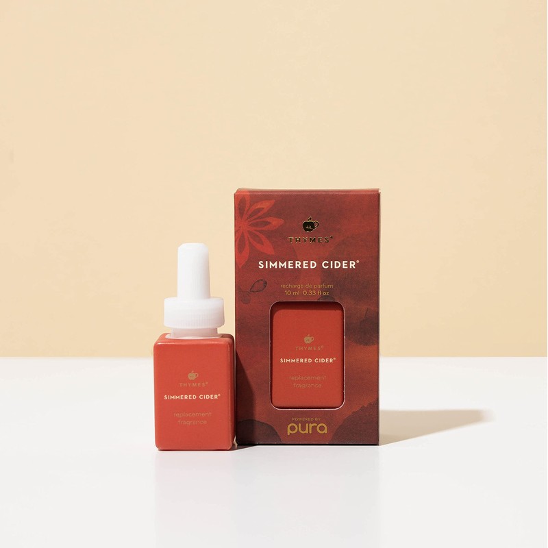 - Pura Smart Home Fragrance Diffuser Refills (Pack of 2): Refill your Pura fragrance diffuser with the welcoming fragrance of Thymes Simmered Cider. Each Pura fragrance refill is intended for single use. These long lasting scent refills for your Pura smart device will last up to 350 hours or 15 days on medium intensity. (Listing is for 2 Pura refills. Pura diffuser sold separately.)
