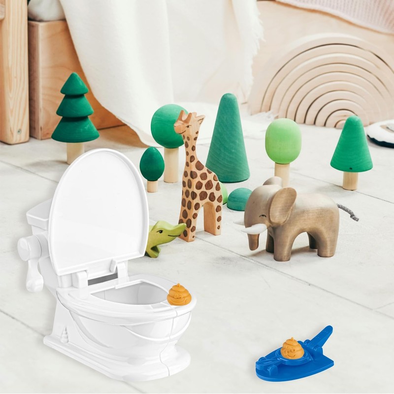 - 【INNOVATIVE GAMEPLAY】By Opening the toilet lid and using the launcher to shoot the plastic poop into the toilet, increases the fun and interactivity of the game while exercising children's hand-eye coordination.
