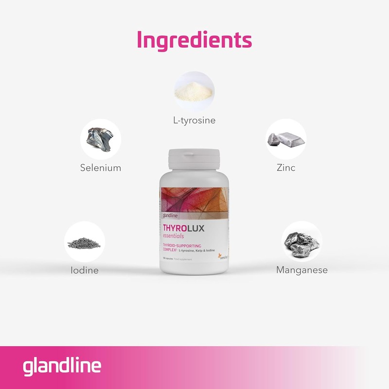 ThyroLux is a powerful thyroid support supplement, combining iodine and selenium—two key nutrients known for their role in maintaining normal thyroid function. Enhanced with manganese to help protect the thyroid and liver from oxidative stress and support energy production, and zinc to aid cognitive function and work alongside selenium for cell protection, this formula delivers comprehensive support for your thyroid health.