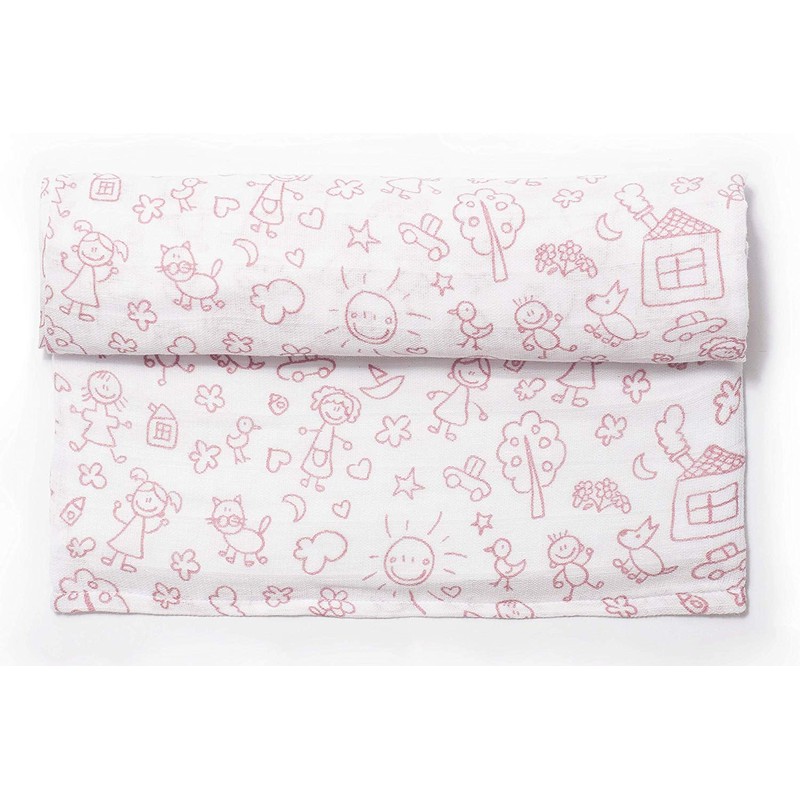 Ti TIN Baby Muslin Cotton Fiber 100% | Gauze for Baby Extra Soft | Absorbent | Child Drawings Pink Pattern, 120x120 cm