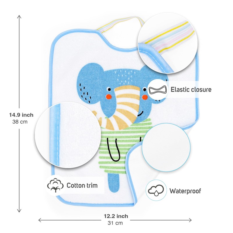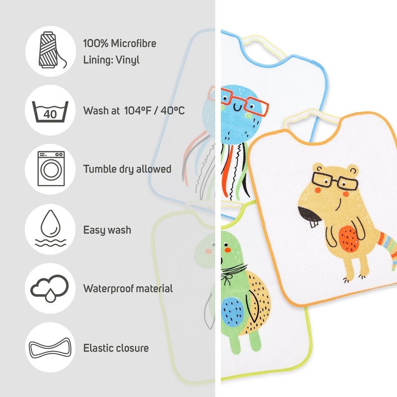- Very useful to prevent your baby or the clothes he is wearing from getting dirty at meals. The bibs are waterproof, breathable and very soft and super absorbent