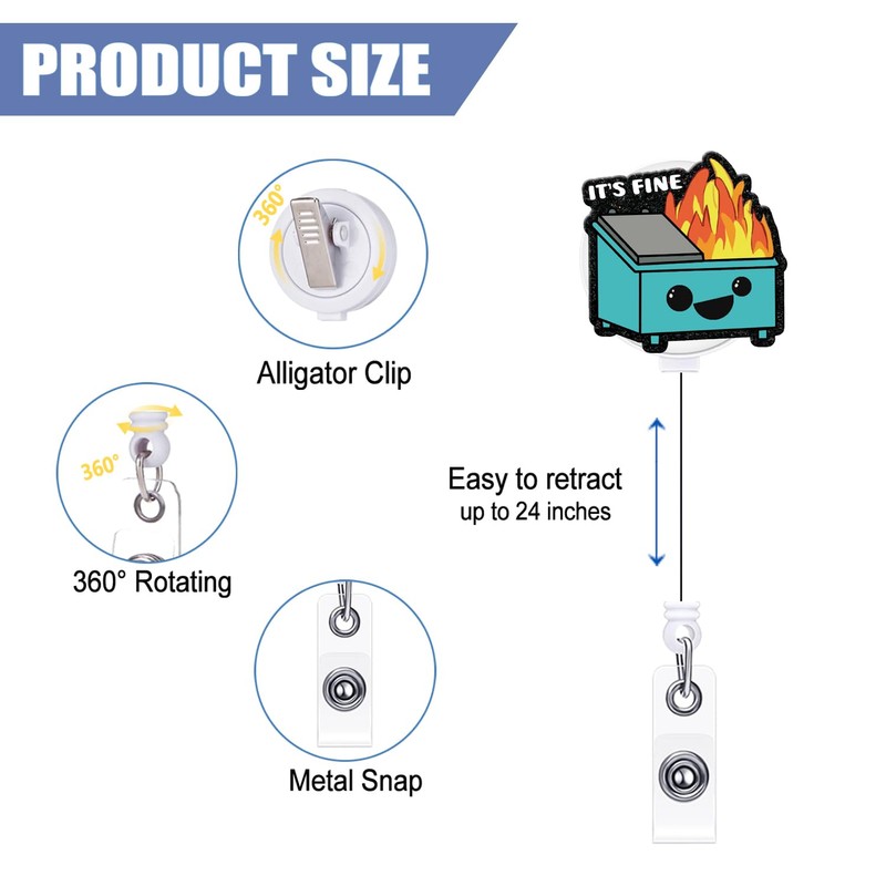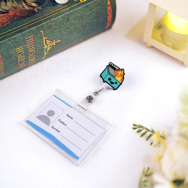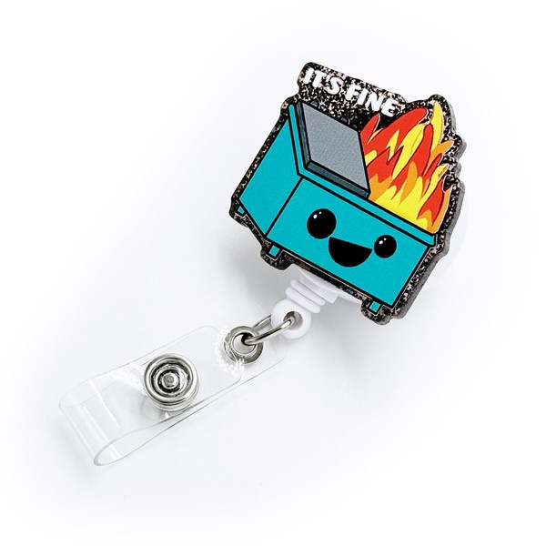 Tian Zhun Badge Reel Retractable, Fire Badge Reels It's Fine Funny Acrylic Name Badge Accessory for RN CNA Nurse Teacher Office Worker