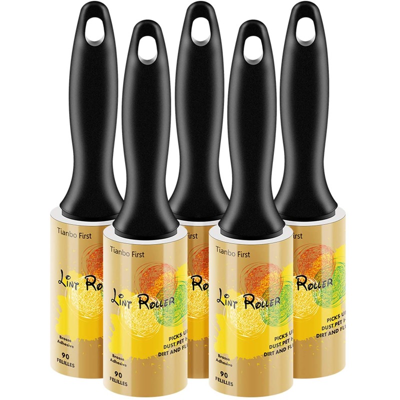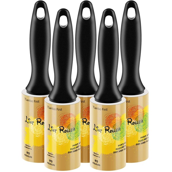 TIANBO FIRST Professional Lint Roller with Giant Adhesive, Extra Sticky Pet Hair Lint Remover, 5 Rollers, 90 Sheets/Roller (450 Sheets Total)