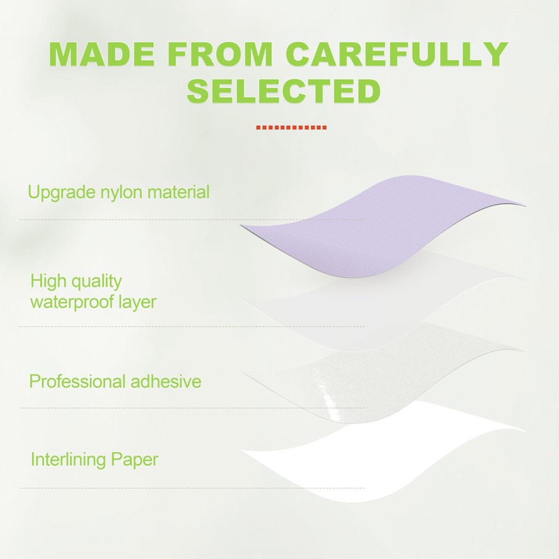- Selected High Quality Materials: We select high-density nylon fibers as the substrate, and use a special glue compounding process to make the perfect fusion of fabric and adhesive layer, forming a waterproof, tear-resistant, adhesive, durable and flexible repair patches, effectively extending the service life of the repaired area.
