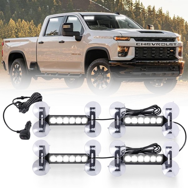 Tiannor 4X 6.1 inch Emergency Strobe Lights White 24 LED Hazard Warning Flashing Safety Dash Front/Rear/Side Windshield Deck Split Lights for Construction Vehicles Tow/Plow Work Trucks