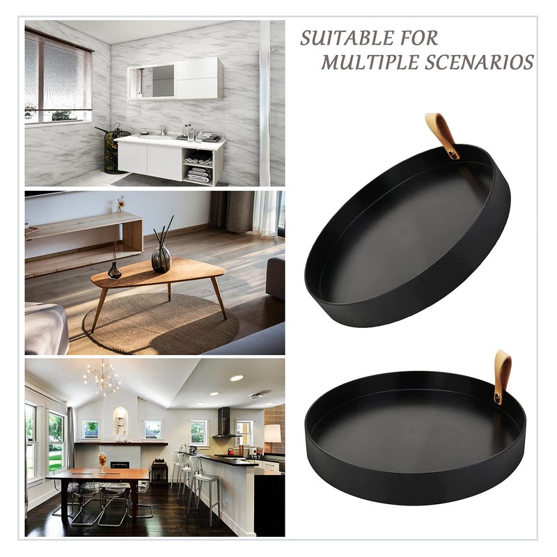 Tianyia Decorative Tray, 26 cm Decorative Tray, Black, Round Decorative Tray, Tray Black, with Leather Handle, for Parties, Home, Bars & Restaurants