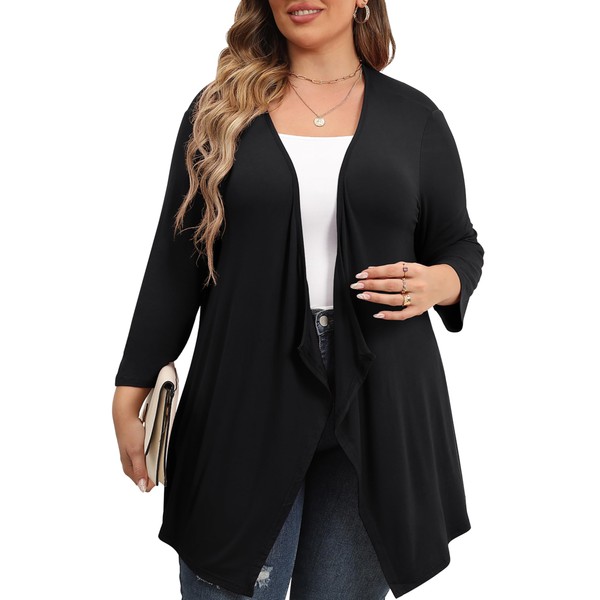 TIANZHU Plus Size Duster Cardigan for Women Lightweight Open Front 3/4 Sleeve Elegant Cover Up 2XL Black