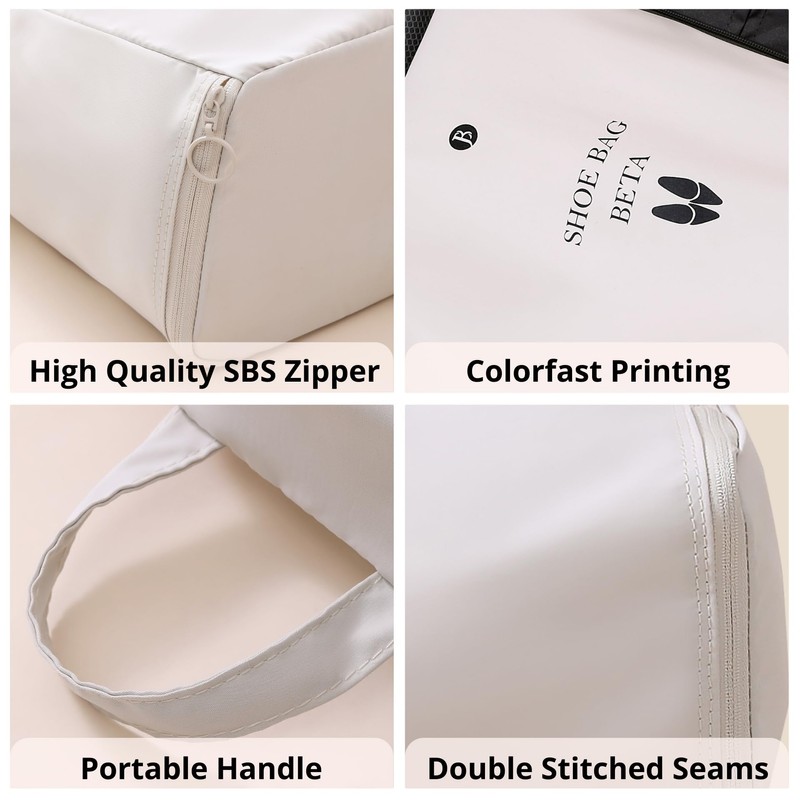 tianzong 2 Pack Shoe Bags for Travel, Water-resistant Shoe Storage Organizer with Zipper for Men and Women (Beige, T400-Beta)