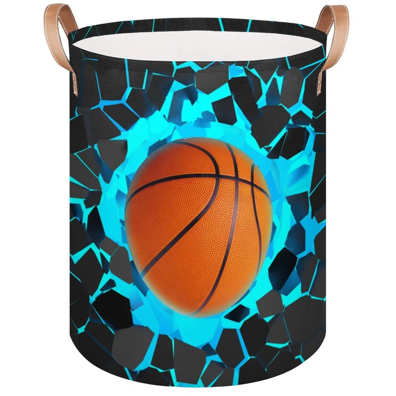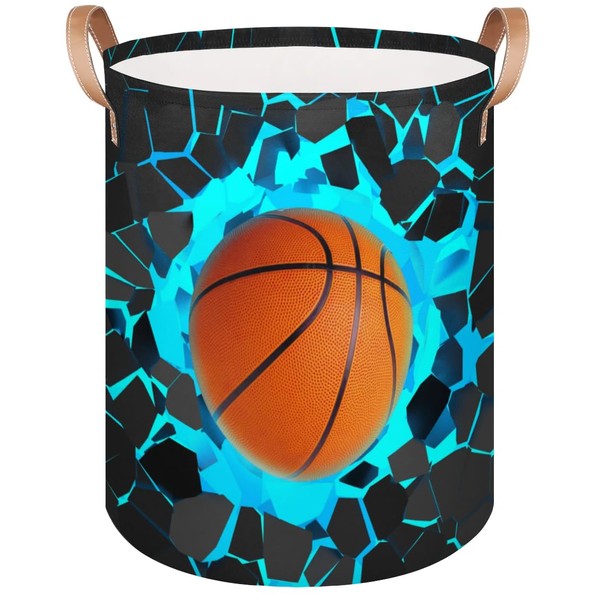 Tiaortas Basketball Collapsible Baby Laundry Basket for Dirty Clothes, Nursery Laundry Hamper with Leather Handle Lightweight