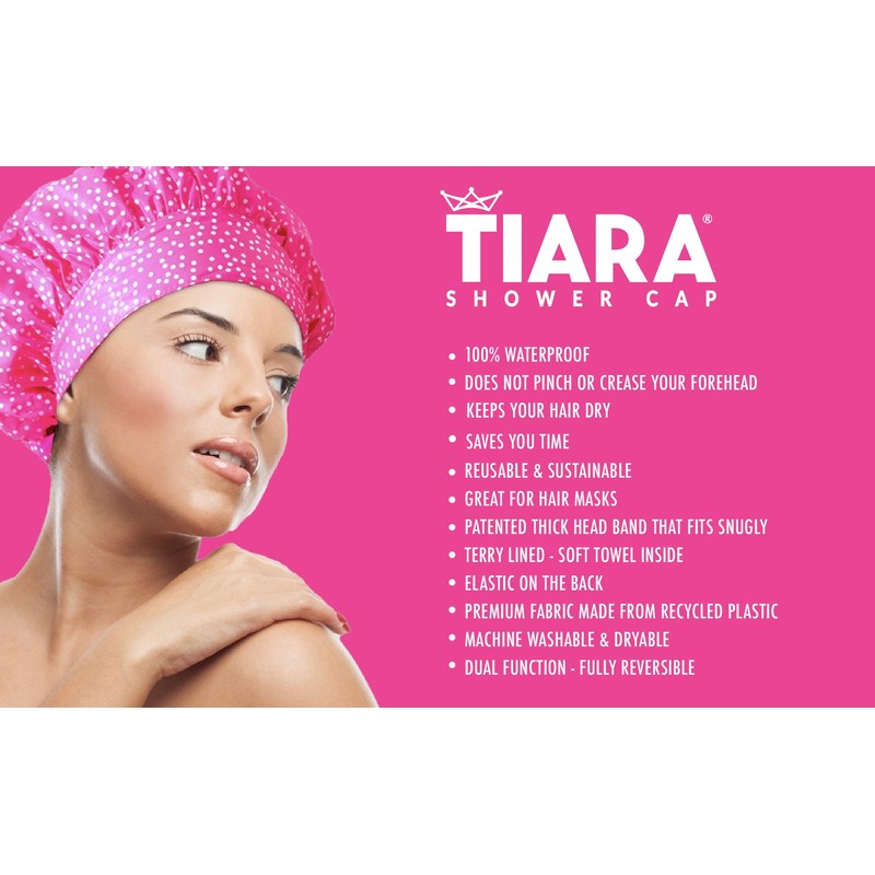 - KEEP YOUR STYLE FABULOUS – Upgrade your shower cap! The revolutionary patented design allows this luxury shower cap to fully eliminate water, humidity and frizz. TIARA keeps your hair dry in the bath or shower so you can protect your blow dry in style. One size fits all