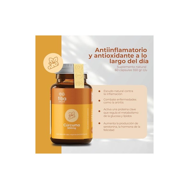 TIBA SALUD - Curcuma: - Suplemento alimenticio, Resultados desde la primera cápsula - 30 cápsulas veganas (1)
