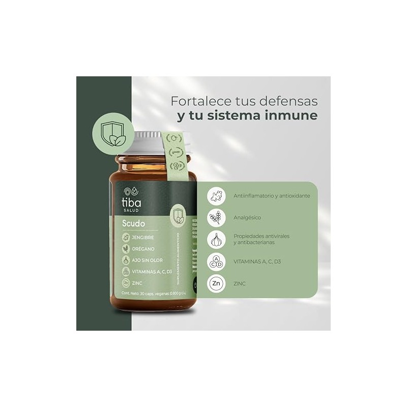TIBA SALUD - SCUDO: Fórmula funcional para el sistema inmune - Suplemento alimenticio con múltiples beneficios para tu salud, Single pack, Resultados desde la primera cápsula, 30 cápsulas veganas (1)