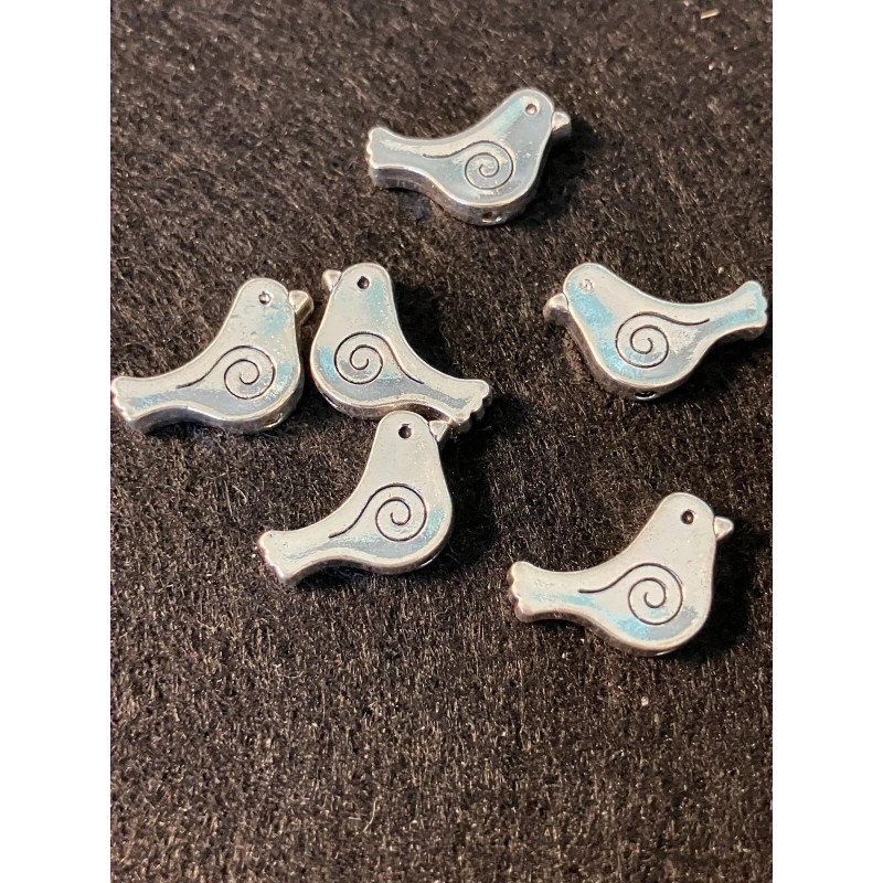 The Tibetan Silver Shiny Bird Beads are a set of 10 beads measuring 9x15mm each, with a hole size of 1.5mm. These beads are perfect for jewelry making and craft projects, adding a unique and intricate touch to any design. With their shiny finish and bird-shaped design, these beads are sure to stand out in any project and add a touch of elegance to your creations. Ships same day or next business day via stamped mail.