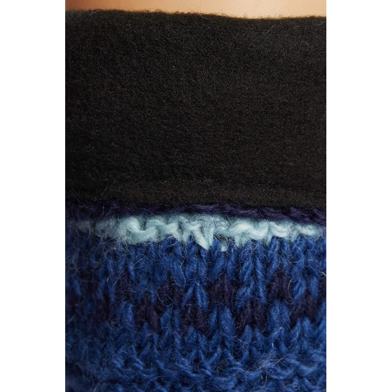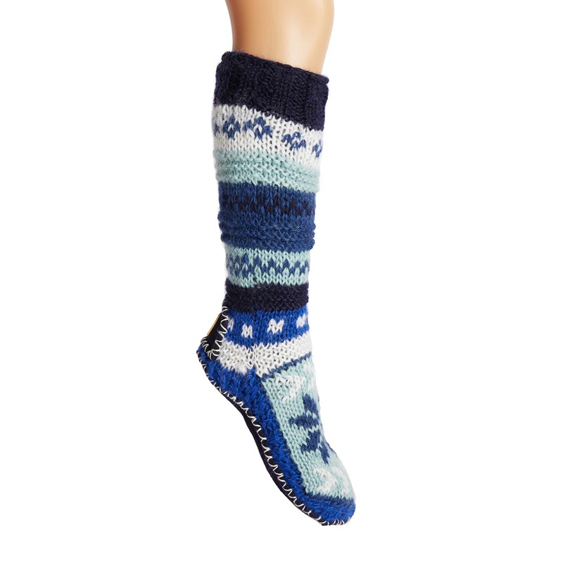 Tibetan Socks Hand Knit Wool Fleece Lined Long Slipper Socks with Non Slip Soles (Blue, XL)