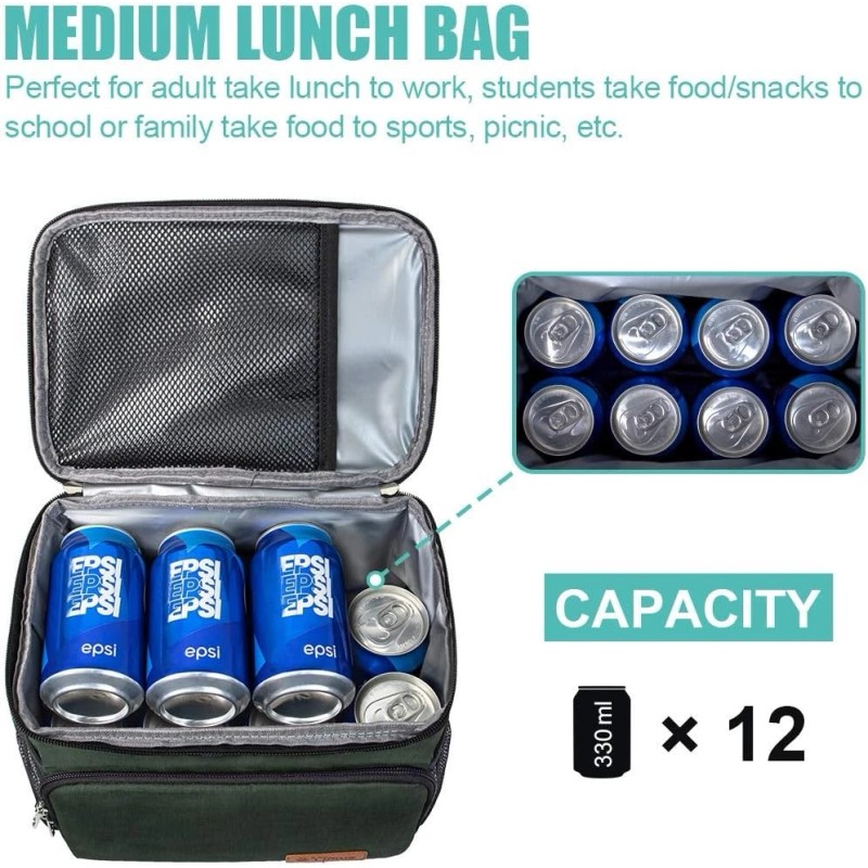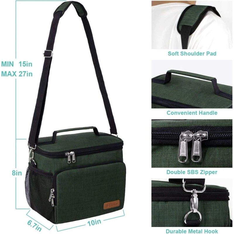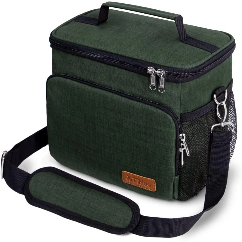 Tiblue Insulated Lunch Bag for Women/Men, Reusable Lunch Box for Office Work School Picnic Beach, Leakproof Freezable Cooler Bag with Adjustable Shoulder Strap for Kids/Adult(Medium, Retro Green)