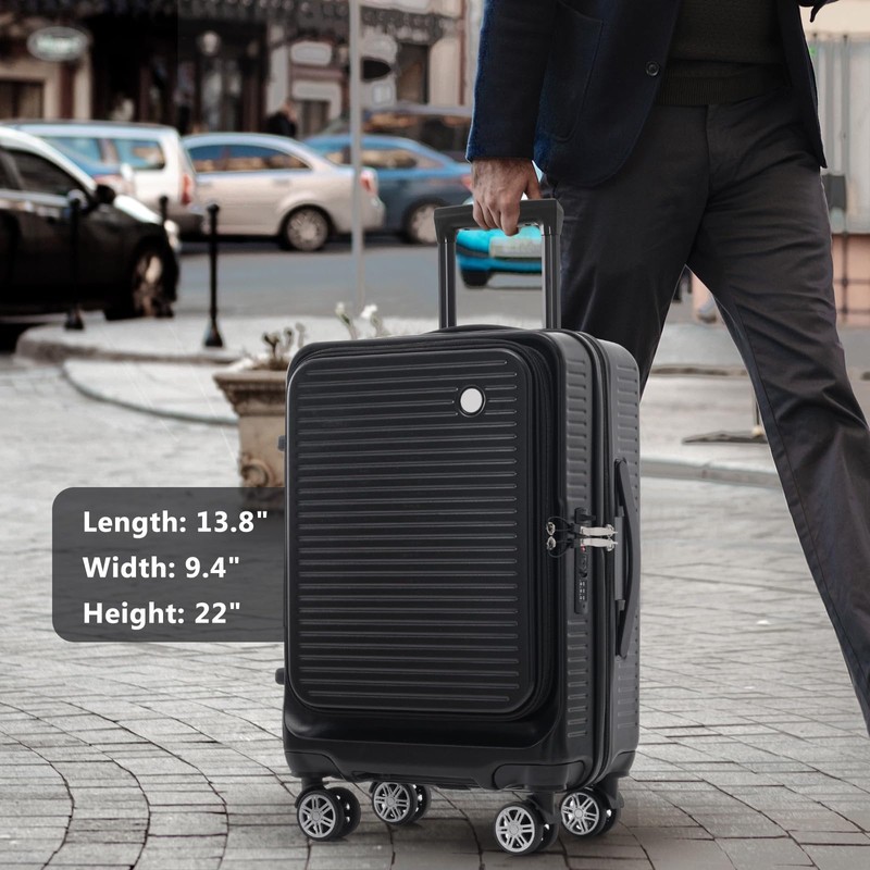 • The front pocket compartment can be opened for easy access to personal items and electronic devices while on the go. Compared to traditional luggage, this suitcase can be opened from front compartment to main compartment, making it convenient for you to use in any tight space.
