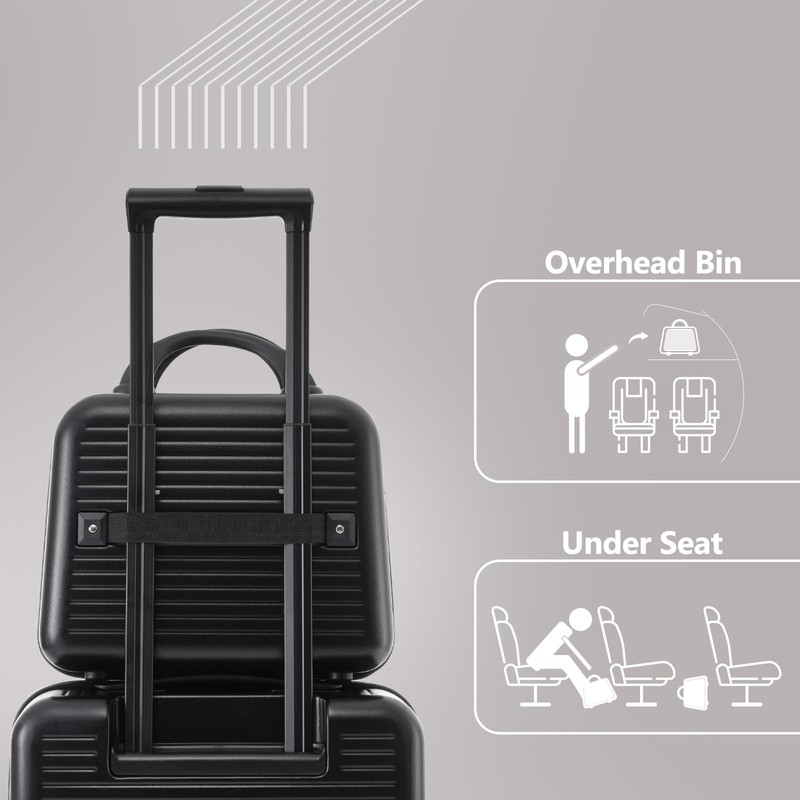• Luggage is made of premium ABS hard shell material, which is lightweight, flexible and has strong wear resistance and impact resistance. 20 inch carry-on luggage size: 22 x 13.8 x 9 ", complies with airline regulations. Portable carrying case size: 11.8 x 11.8 x 6.7 ”. Perfect suitcase for short trips, business trips.