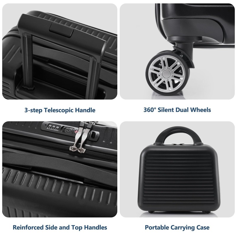• Double wheels are more durable and can withstand greater pressure. 360° spinner wheels are easy to maneuver and adapts to various road conditions. Whether pushing or pulling, it moves easily. TPE soft handles on the top and side of the suitcase make it easier to lift the suitcase up steps or into luggage rack.