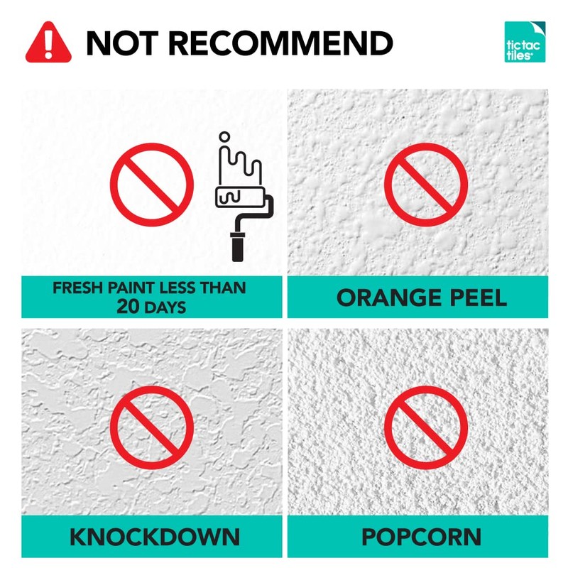 - 🆘 [NEED HELP?] NOT suitable for the outdoor, and curved and heavily textured walls. If textured, sand, apply a coat of primer, and allow for 7 days of curing.