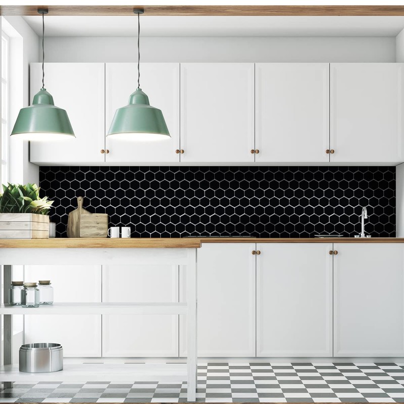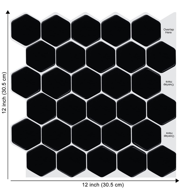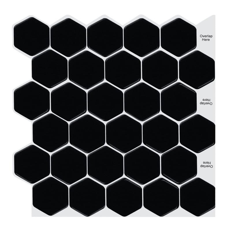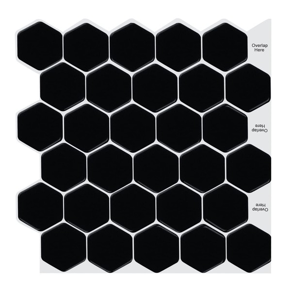 Tic Tac Tiles 12" x 12" Peel and Stick Tiles in Hexagon Designs (10, Regular White & Black)