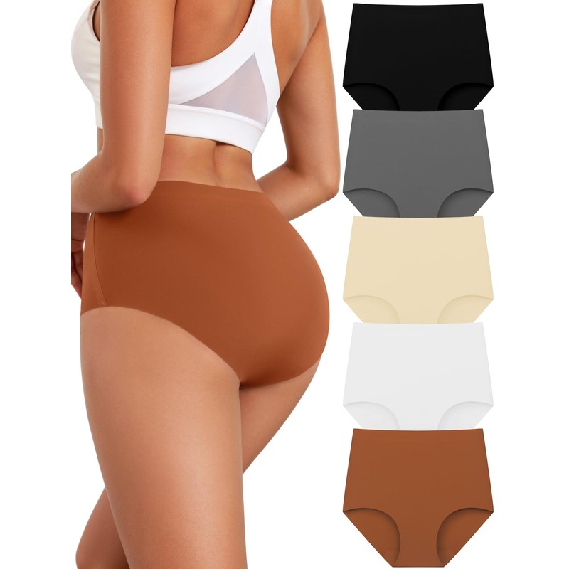 tichers High Waist Seamless Briefs for Women, Soft Full Coverage Underwear & No Show Panties, 5 Pack