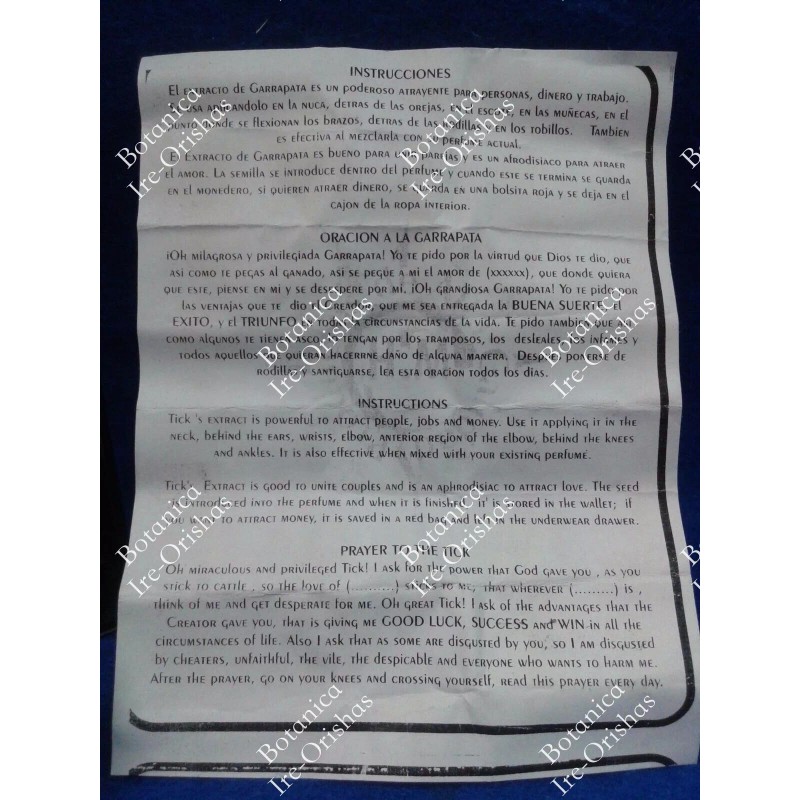 Tick's Perfume & Oil Extract / Extracto de Perfume y Aceite De Garrapata
