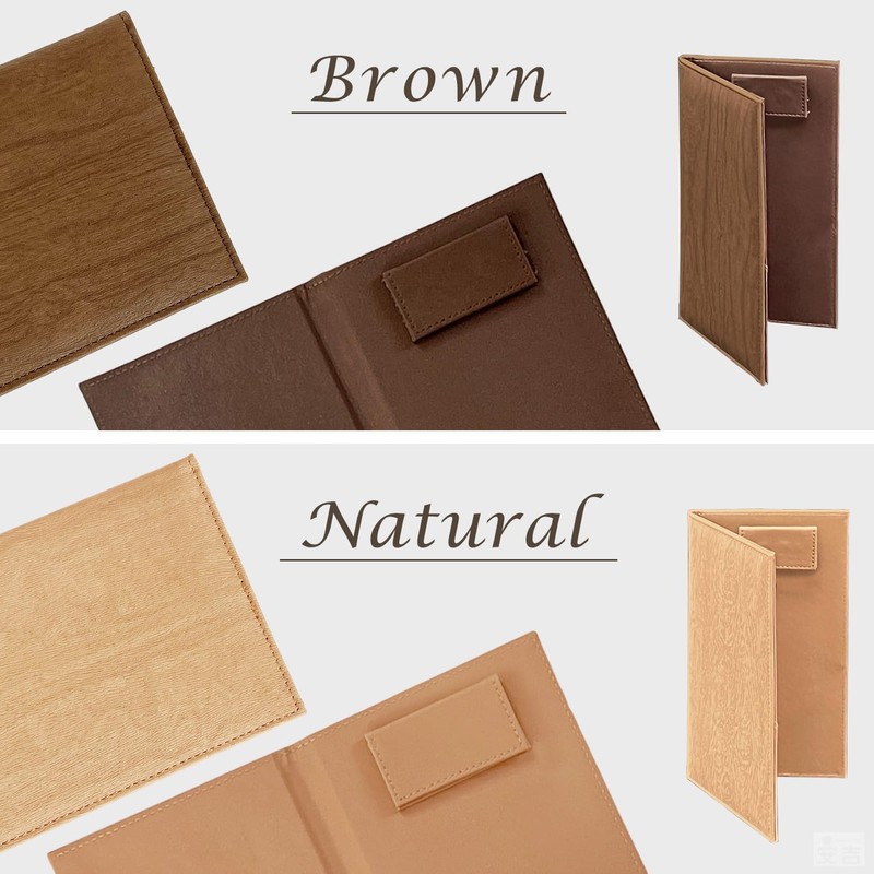 Ticket Holder Bi-Fold Magnetic Leather Touch Japanese Style Payment Board Ticket Binder with Pocket Clip (Dark Brown Wood Grain / Set of 10)