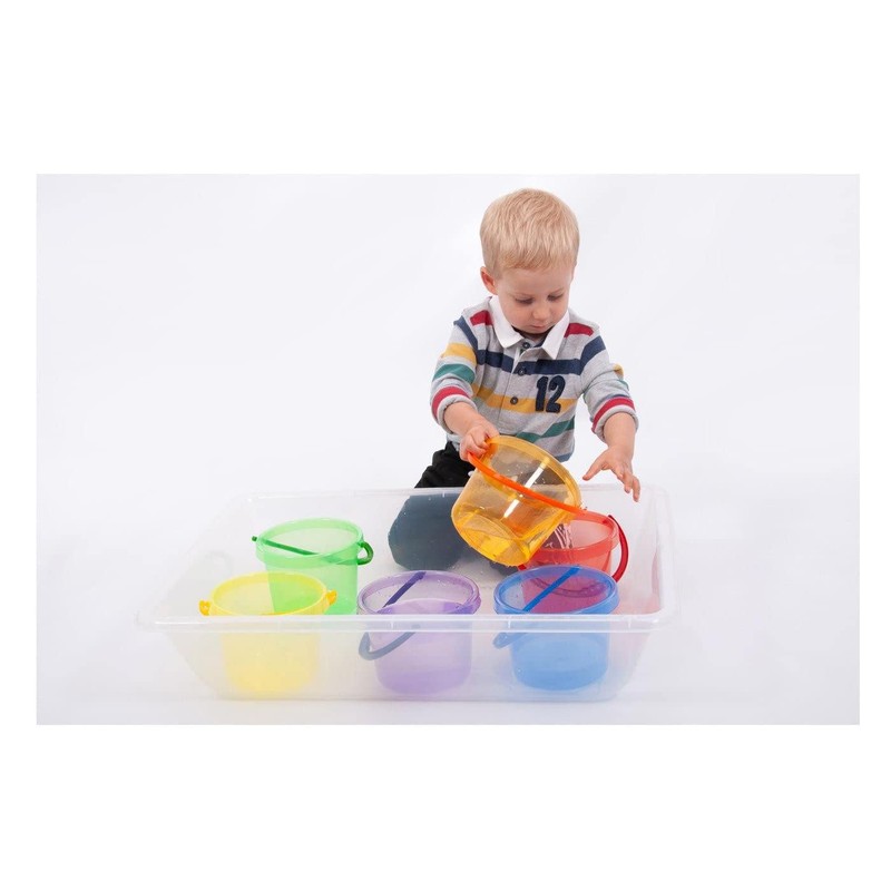 • INCLUDES -- 6 buckets in 6 colours (red, orange, yellow, green, blue, purple).