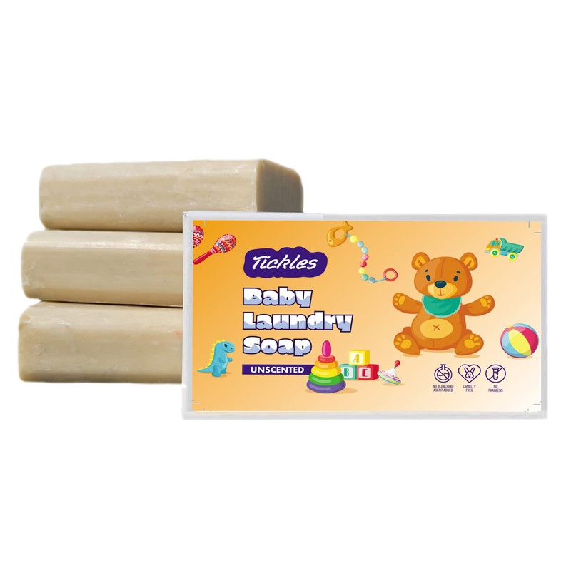 Tickles (Pack of 3) Handmade Nirol Organic Unscented Washing Soap For Baby Clothes, Diaper, Accessories Mainly for Sensitive Skin 100% Chemical Free Natural Laundry Soap For Baby (12.6 Ounce)