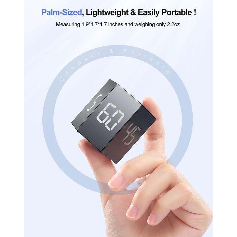 - Compact, magnetic and rechargeable. The size of the flip timer is 1.9 x 1.8 x 1.7 inches, fits in the palm of your hand and weighs only 2.2 ounces. It is portable and fits in any bag or bag. The timer has a magnetic base that can be attached to the fridge or any steel surface and frees your hands when measuring time. It is rechargeable, with a durable lithium battery and a USB-C charging port.
