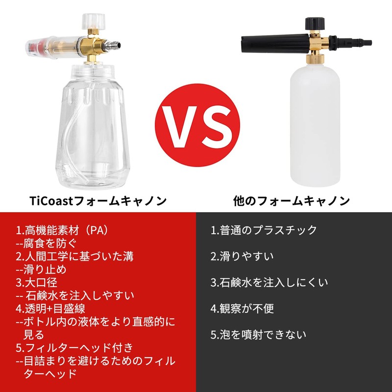 TiCoast Foam Cannon, 1.0L Foam Gun for Car Wash with 1/4 Quick Connector, For Pressure Washing Guns, For High Pressure Washers, Foam Lance, High Foam, Includes Dial, Foam Volume Adjustable, Car Wash, Snowfoam (Clear)