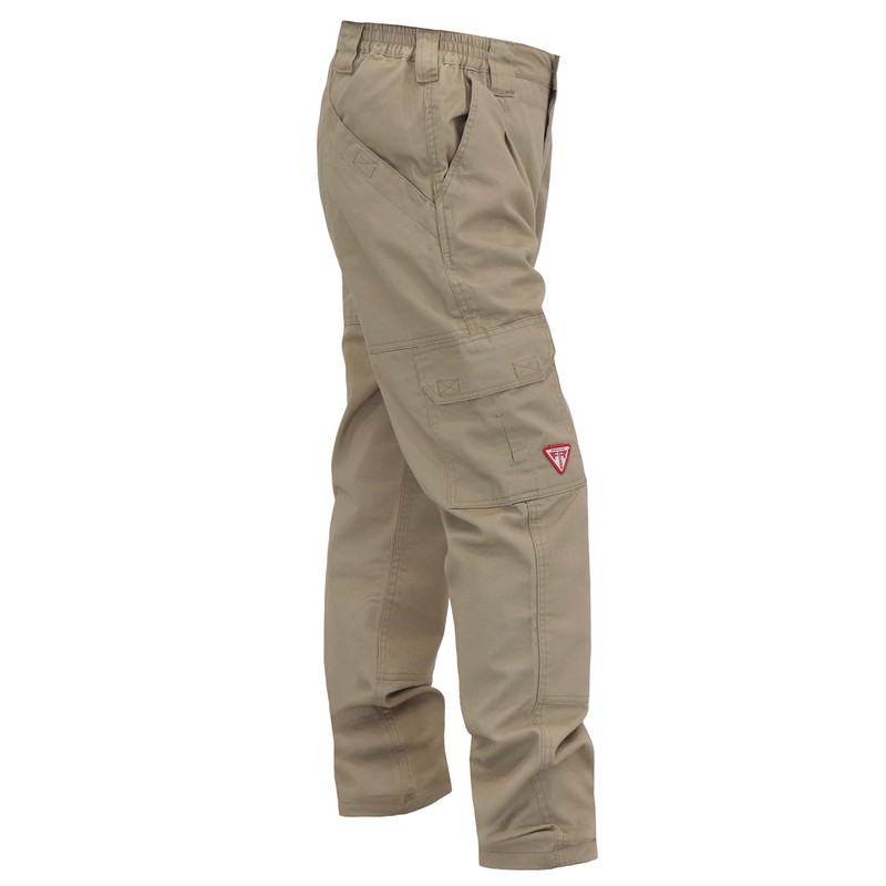 TICOMELA FR Pants for Men Flame Resistant Cargo Pants Lightweight 100% Cotton NFPA2112 7.5oz Khaki Elastic Waist Pants