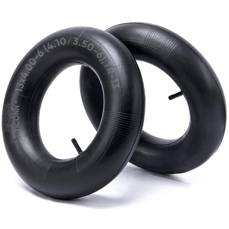 TICONN 13x4.00-6, 4.10/3.50-6 Tire Inner Tube, 2 Pack Inner Tire Tube for Wheelbarrow Tires, Replacement Tube with TR-13 Straight Valve Stem for Wheelbarrows, Lawn Mowers, Hand Trucks