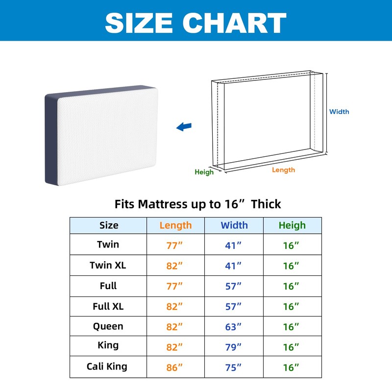 • [MULTIPLE SIZE OPTIONS] Available in various sizes, including Twin, Twin XL, Full, Full XL, Queen, King, and California King, these mattress protectors bags cater to a wide range of mattress dimensions and fit thickness up to 16".