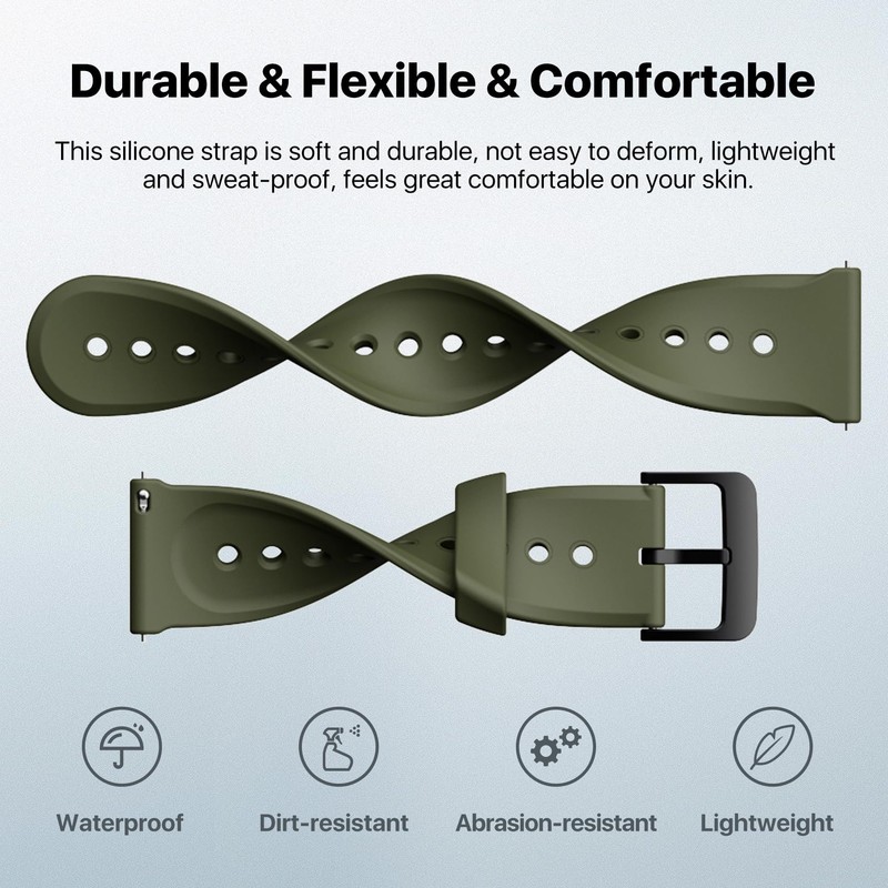 - 【Material】The watch strap material is made of Eco-friendly silicone + Stainless steel buckle. The surface of strap is smooth, soft and durable, not easily deformed, light and sweat-proof, and it feels very comfortable to stick on the skin. Lightweight and waterproof. Easy to clean.