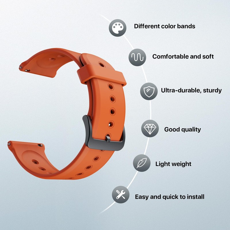 - 【Material】The watch strap material is made of Eco-friendly silicone + Stainless steel buckle. The surface of strap is smooth, soft and durable, not easily deformed, light and sweat-proof, and it feels very comfortable to stick on the skin. Lightweight and waterproof. Easy to clean.