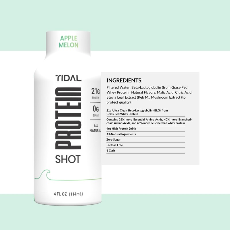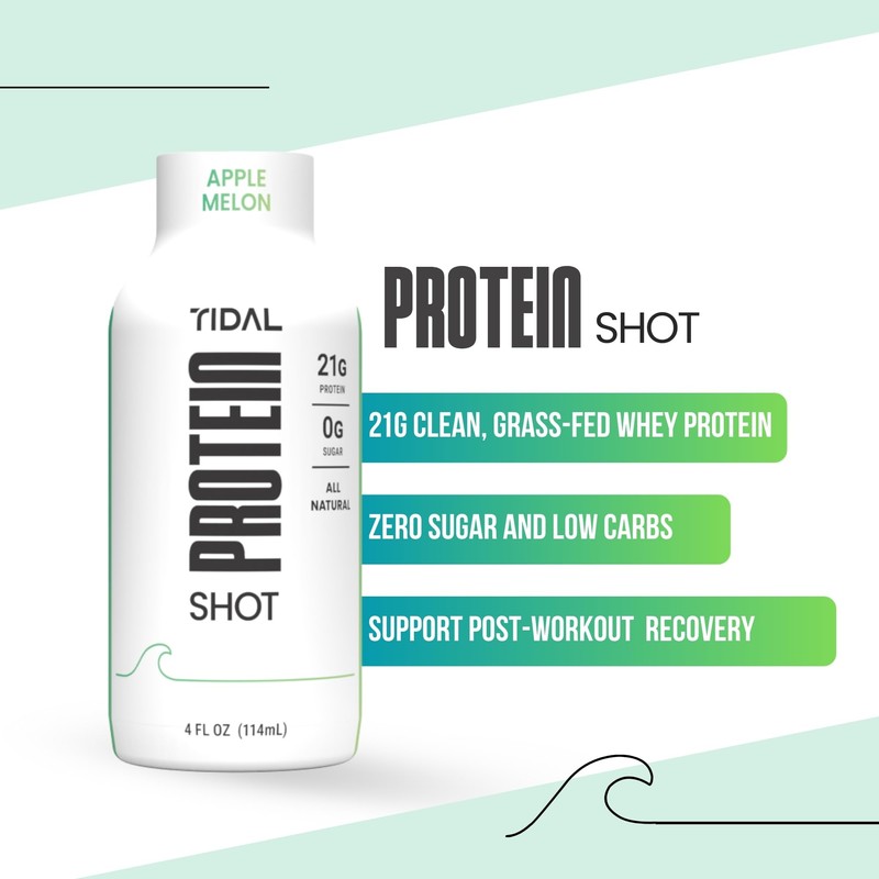Tidal Protein Shot | 4 fl oz | 12 Pack | 21g Grass-Fed Whey Beta-Lactoglobulin (BLG) | Fast Absorbing, Keto Friendly, Sugar Free | Convenient On-the-Go Recovery Drink