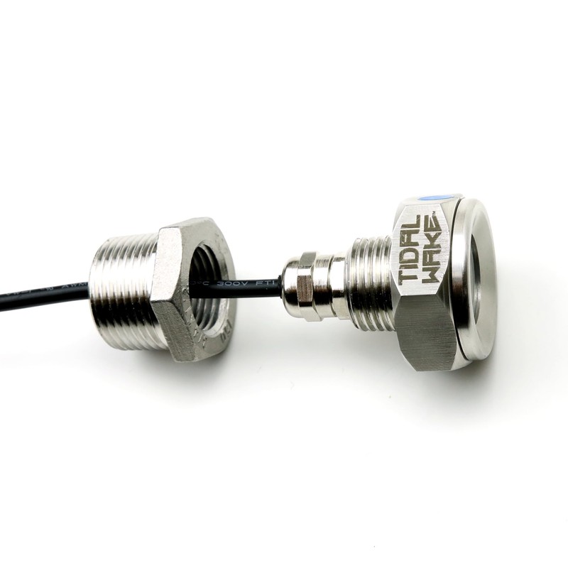 - Convert your 3/4″ drain plug inlet to a 1/2″ inlet so you can use a Tidal Wake Underwater LED Boat Drain Plug Light! (LED light not included)